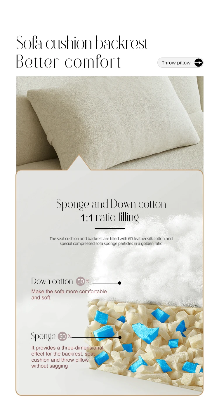 1.Using 35D high density sponge (especially used for compression sofa) to provide better comfort and less deformation degree.