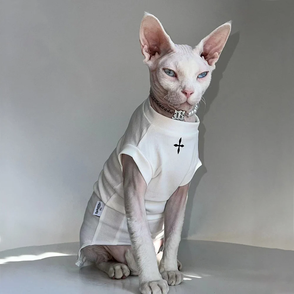 Sphynx Cat Clothes Winter Black Cotton T-Shirts , Pullover Kitten Shirts with Short-Sleeve, Hairless Pajamas Apparel for Cats